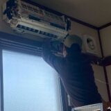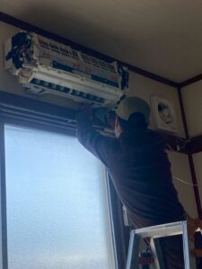 パテ塗りに伴い、エアコンの清掃も行いました。